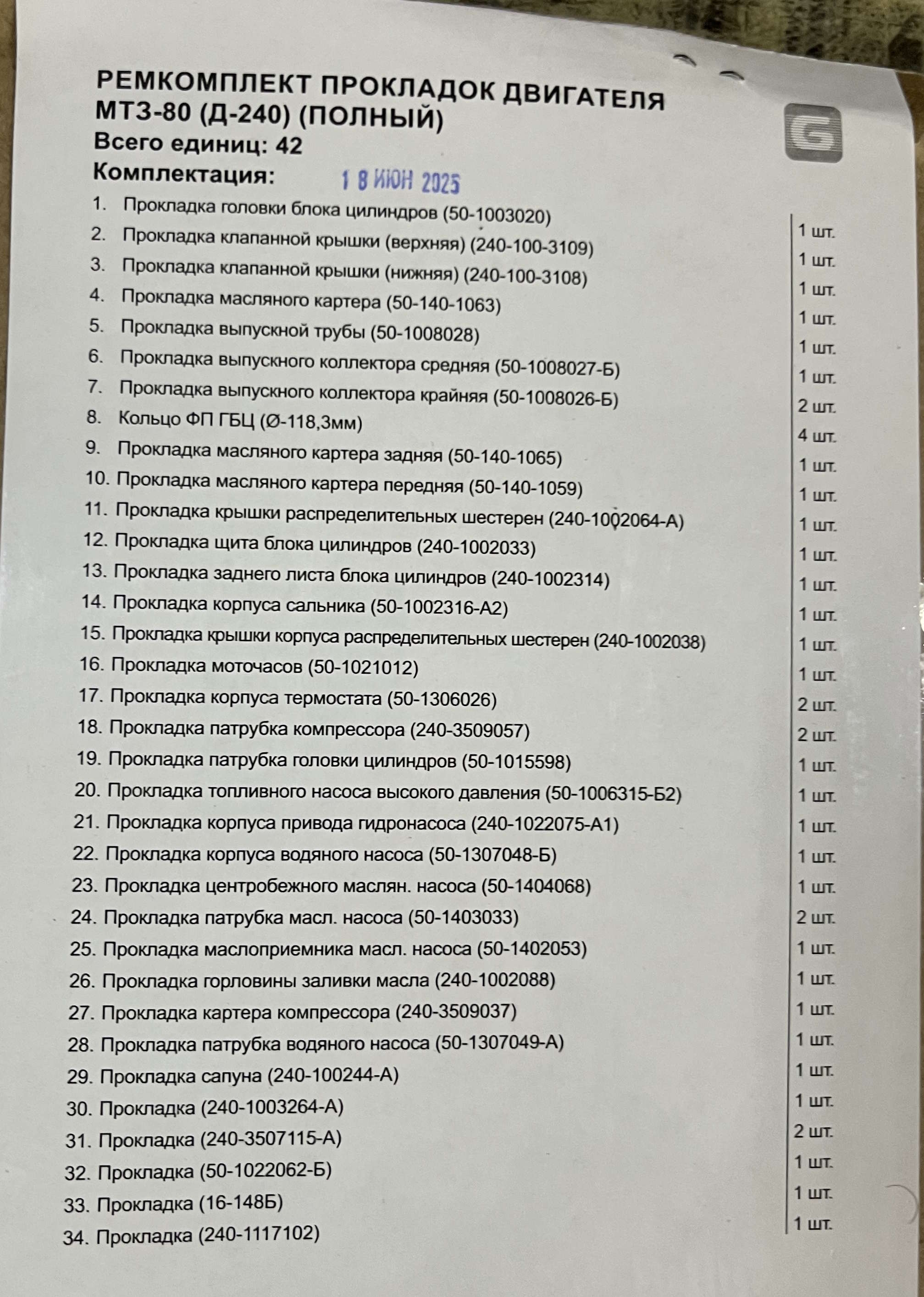 К-т прокладок двигателя (полный) Д-240