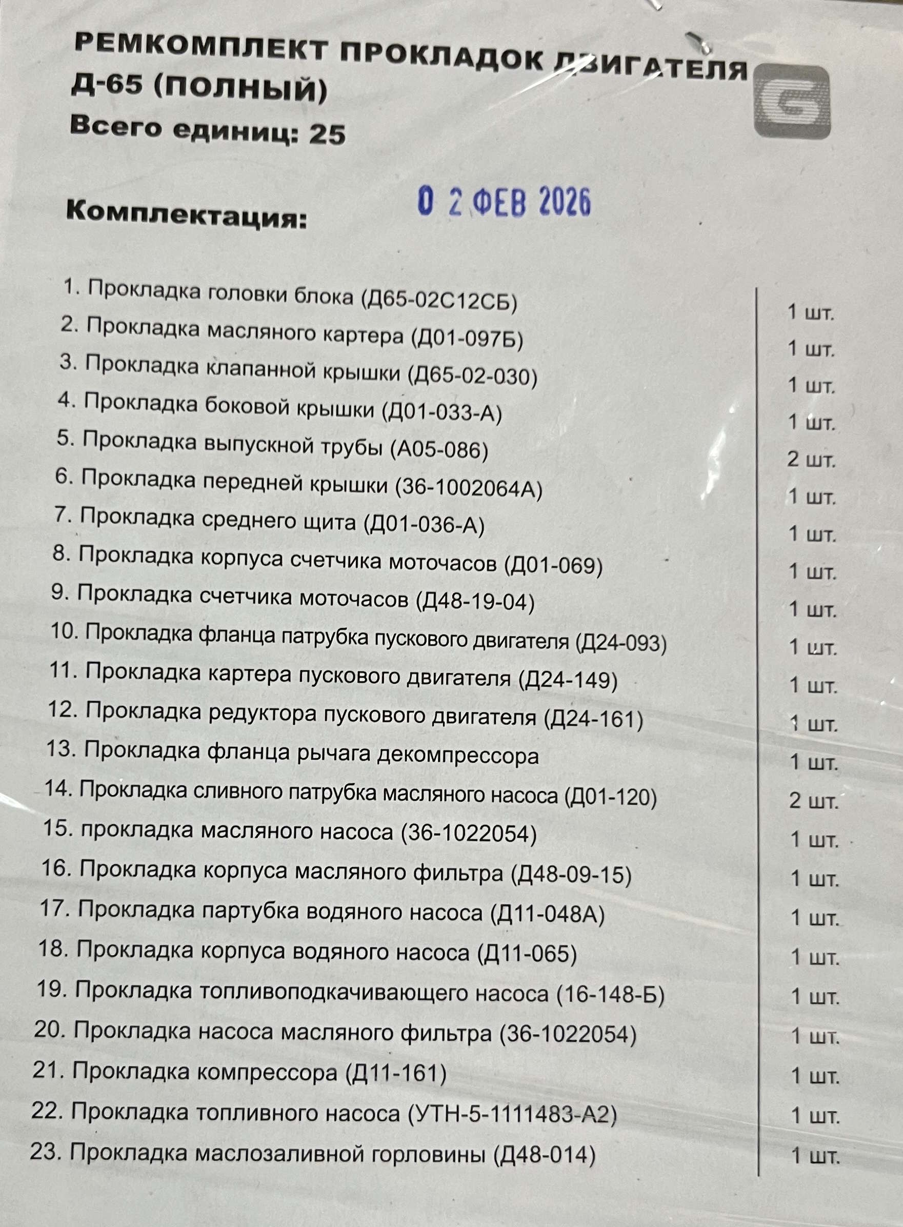 К-т прокладок двигателя (полный) Д-65